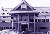 拳精館正面玄関、太い柱が訪問者を圧倒する。このとてつもない計画を実現したのは、ハンス・ミュラーさん。空手の先生である。立派な道場を建てるのが夢だった。かつて奈良の東大寺、京都の清水寺などを見てショックを受け、計画を開始。しかし、構想は出来ても、長い間設計士に巡り会わなかった。ところが、空手の修行で日本に行った折、休暇を利用して出かけた札幌で、日本の建築士と電撃的な出会いがあり、一挙に具体的な計画へと準備開始。しかし、そんな冒険のような計画に資金の貸付をしてくれる銀行は簡単に見つからないまま歳月が流れていく。ところが、このハンス・ミュラー氏には、不思議なパワーが備わっているのか、とうとう資金繰りもでき、いよいよ計画に着工。柱、梁用の大木を自ら選定し、伐採するという念の入れよう。建物のメインとなる空手道場の梁は何と長さ16m、直径1.2m、重さ3.6トンにもなる丸太。それが何本となく使われている。建物全体で57の柱が使用され、全体で1600・に達する。